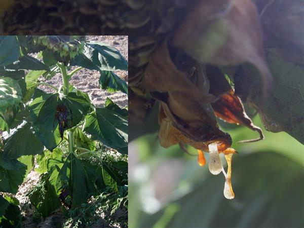 Bacterial stalk and head rot diseases are both caused by the same bacterial pathogens, Pectobacterium carotovorum subsp. carotovorum and P. atrosepticum, belonging to a group of soft-rot plant pathogenic bacteria. They are known to occur in Russia and the United States and throughout Europe, South Africa, and several central African countries. These pectobacteria belong to the soft-rot-causing group of plant pathogenic bacteria. The diseases are capable of reducing yield and seed quality but are seldom economically damaging.